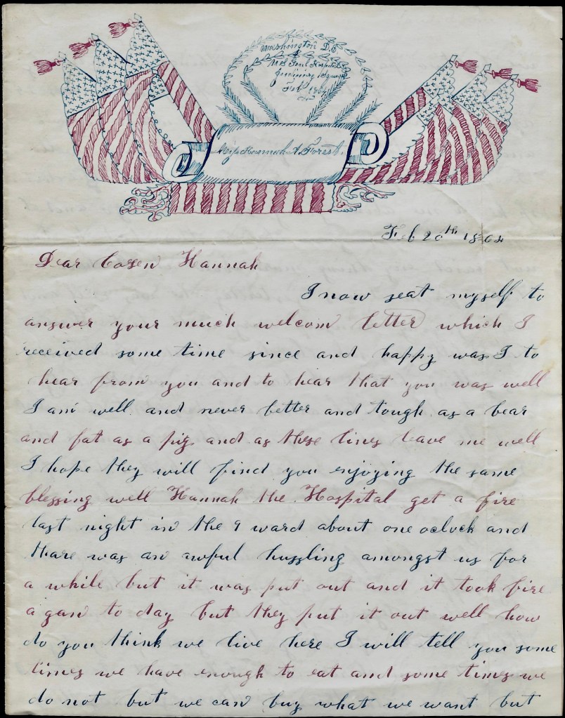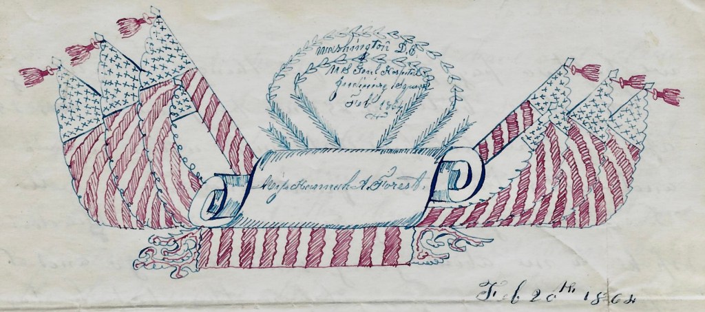 Hand drawn patriotic header on Hall’s letter, 20 February 1864