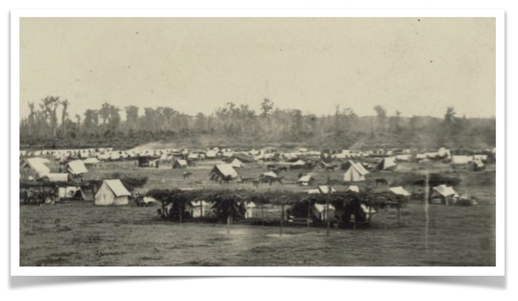 I was on picket yesterday and on a little scout with the Colonel last night. The other day we moved camp to the bank of the river and we are in a good place now. We have three springs of water close by. We get fresh beef four days out of ten and the rest of the time we get smoked bacon.