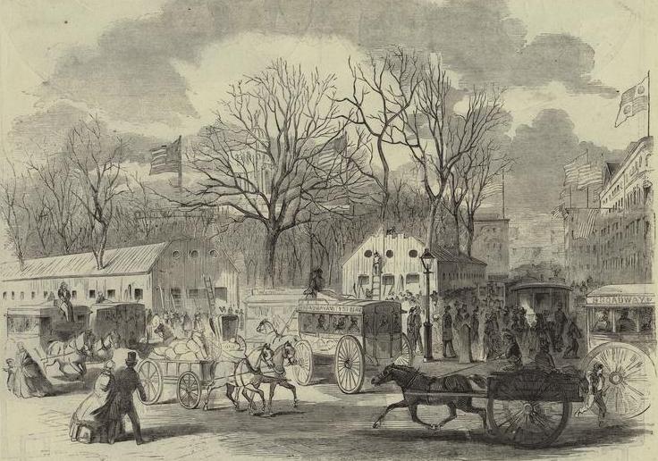 We marched down to the railroad one quarter of a mile. There was all of our regiment awaiting for the train and some more that Gen. [Henry Washington] Benham had command of. There was said to be two thousand troops. We waited two hours before the train to come right in the mud. The band played, “The Gal we left behind me” and several other popular airs suited for the occasion. There was two trains, The first one was a wood train. Half of them got onto it. Our company got on to the second train on top. There was an inch of snow—nice and cool. We rode seven miles, got off at Meade Station. We got off and formed into line and was ordered to stack arms and unsling knapsacks and make ourselves miserable until night. I thought so too for the mud & snow was as bad as a barn yard, but sleep we had got to have. We spread down our rubber blanket and laid down. My feet was so cold, I took off my boots & warmed them up as well as I could. I never turned in quite as cold as I did that night but I went right to sleep., two of us together.