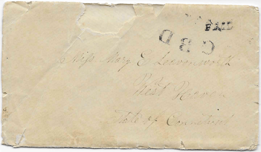 Addressed to Miss Mary E. Leavenworth, West Haven, State of Connecticut