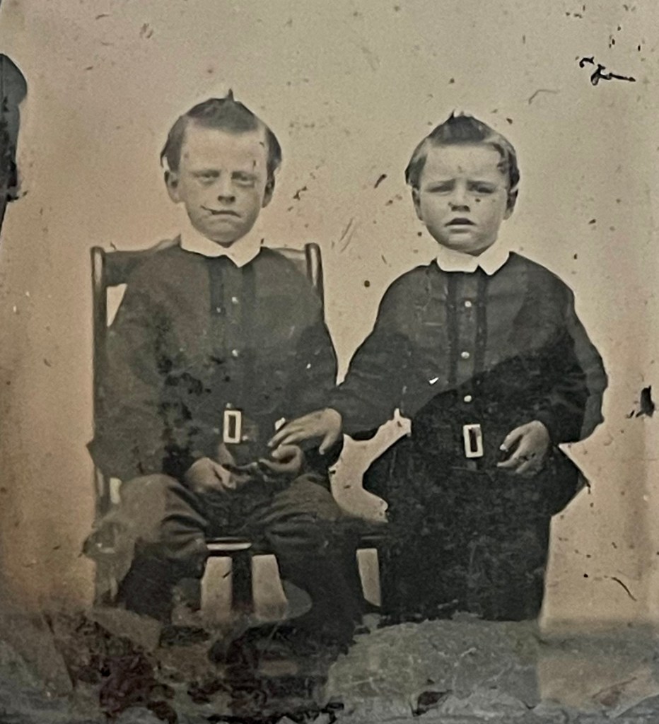 The small collection includes a sixth-plate ruby ambrotype of Stone in uniform, a pre-war image of Stone; two images of his sons, Melville and Theodore; two letters from the Confederate surgeon, John S. Davis, who treated him while in captivity until his death; and a letter from Stone to wife while he lay in captivity. There is also a family image that is poor.”