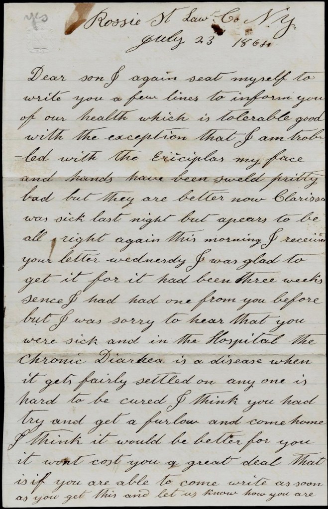 “Following the battle of Fairfield, he was reported by Lieutenant Nicholas Nolan as ‘missing, and supposed to be in the hands of the enemy.’ This was quickly confirmed, and Paulding spent the next nine months confined in Libby Prison. He was a prolific correspondent with his family during his internment, and these letters are very good primary source accounts of both the battle of Fairfield and life in Libby Prison.
