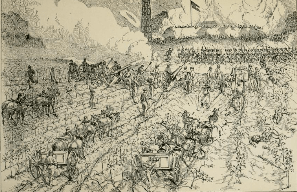 Union troops charge on Rebel grape & canister at the Battle of Secessionville, 16 June 1862