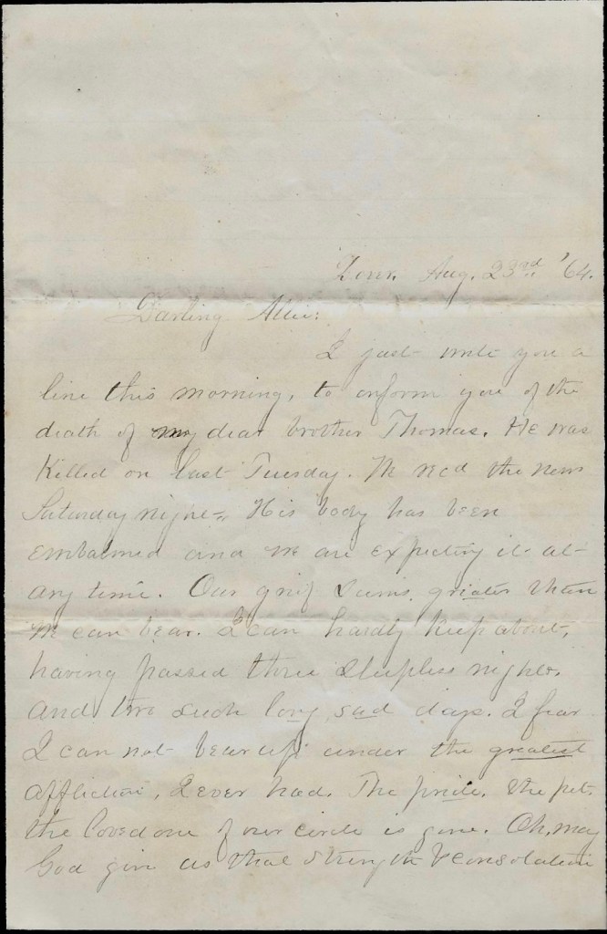 To begin with, you say that Mrs. Cobb does not get any letters from him. He told me today that he had written three or four to her since the fight at Olustee and that was the 20th day of February and one of them has his miniature in it.