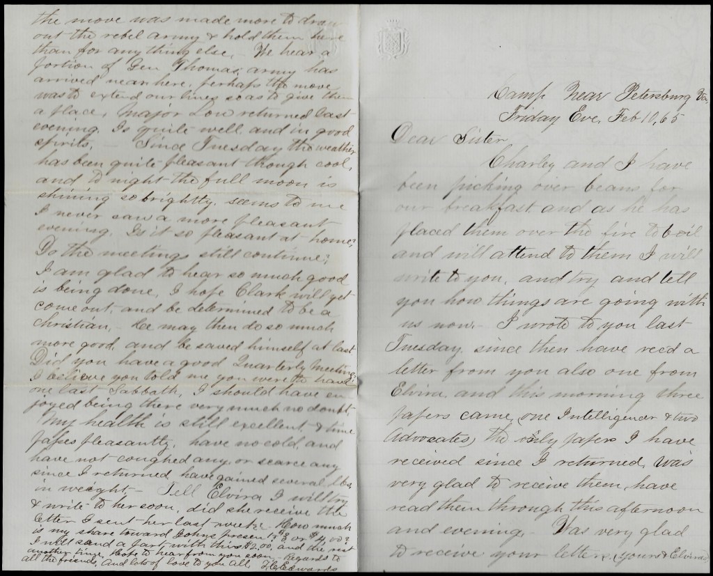 Camp near Petersburg, Va. Friday eve., February 10, 1865
