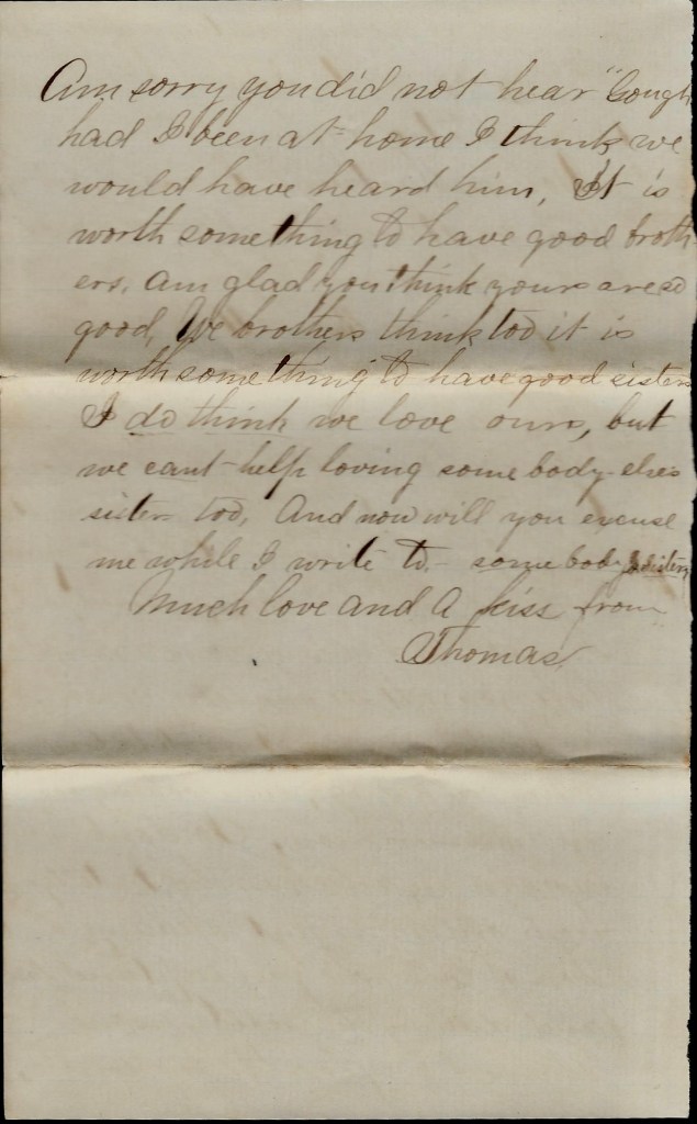I must bid you goodbye until another time. With much love & a good night kiss. I am as ever your loving brother, — Thomas