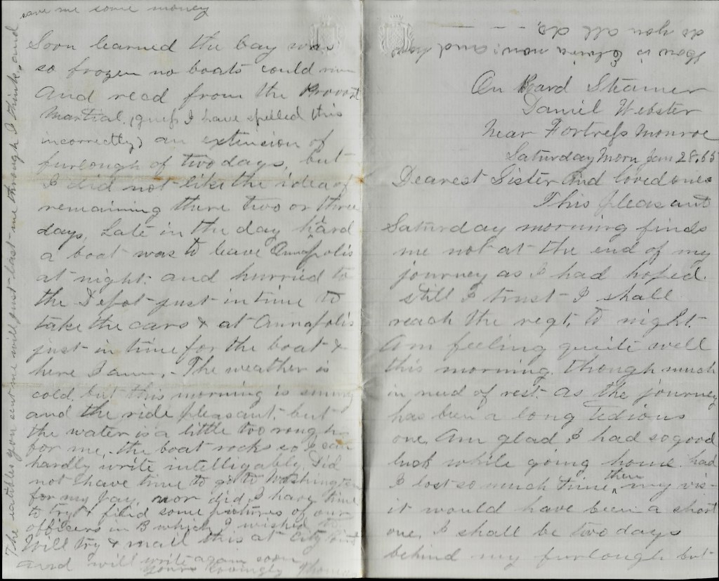 On board steamer Daniel Webster Near Fortress Monroe Saturday morn, January 28, 1865