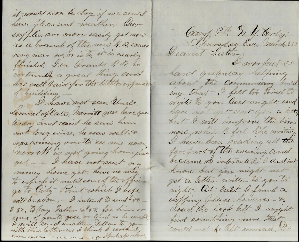 Headquarters 8th N. Y. Artillery Near Petersburg, Va. Wednesday Eve., December 28th 1864
