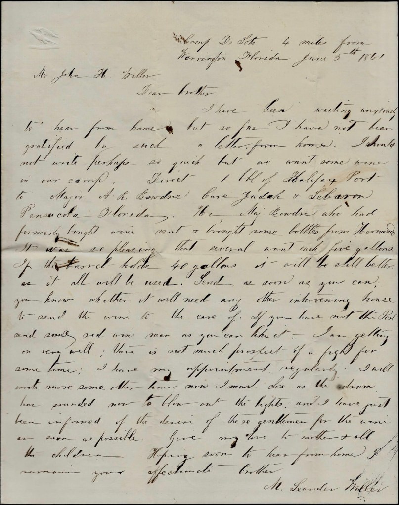 The following letters were written by Mississippi born and bred, Mary Ellen (Barton) Clark (1833-1888)—the wife of William Spencer Clark (1826-1878) of Holly Springs, Marshall county, Mississippi. Mary’s husband was a native of Vermont and attended Amherst College. In 1850, he was enumerated among the students attending Amherst. Ten years later, in 1860, he was enumerated in Holly Springs where he lived with his wife and three children Rosa (age 4), Eudora or “Dora” (age 2), and Rodger B. (6 months). Also residing in the same household were Peyton Johnson, Frank Ross, Hugh C. Barton, and N. B. Dean (teenagers and presumably students at the boys school where William taught). From the letter we learn that William initially served with the Home Guards, a company of the 9th Mississippi. He later joined Co. B, 35th Mississippi Infantry. He survived the war, returned to Holly Springs to teach school, but died of Yellow Fever in 1878.