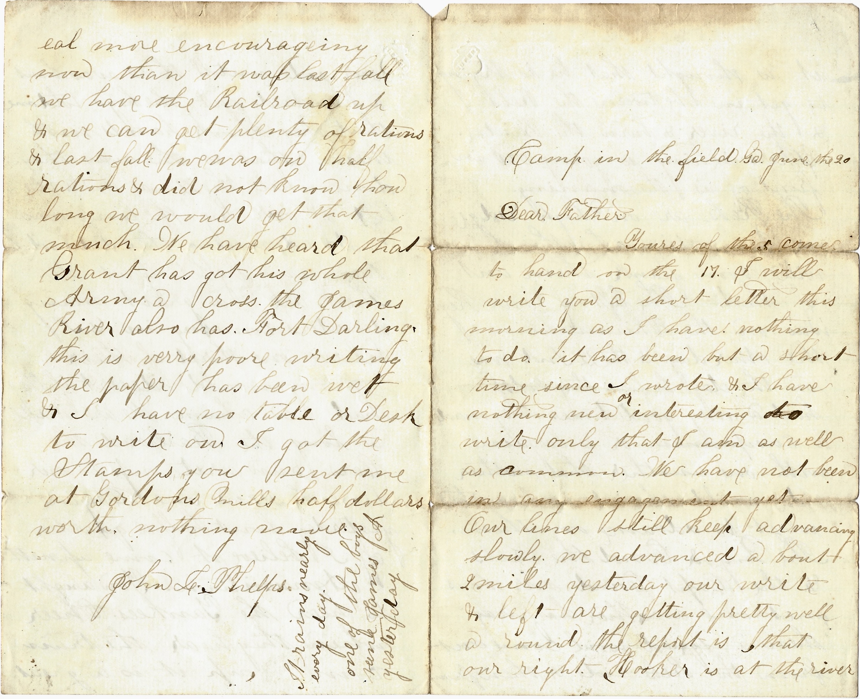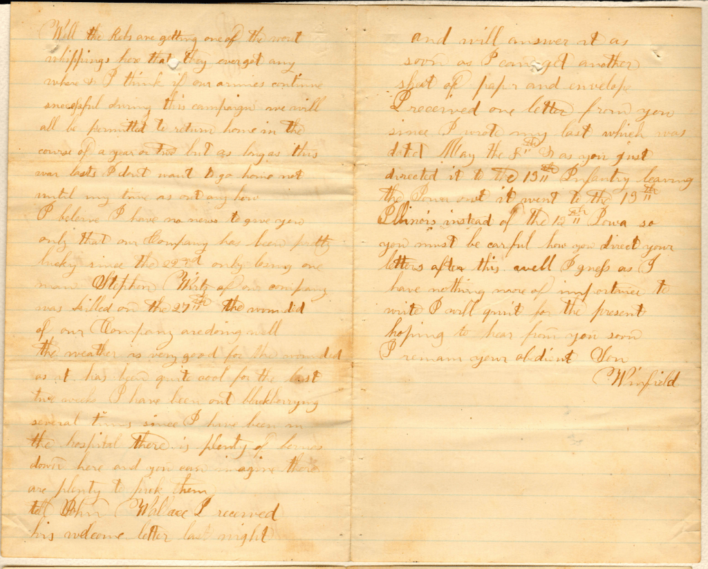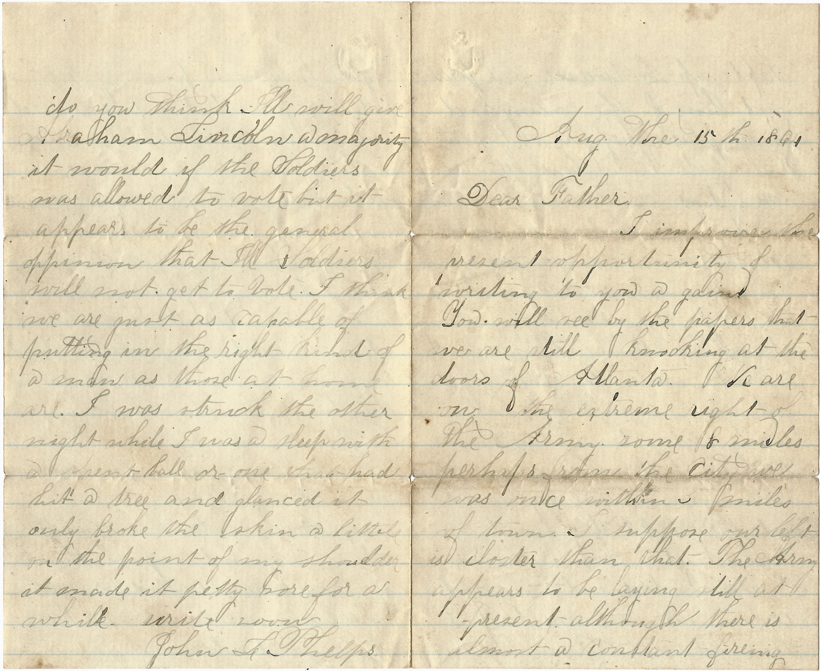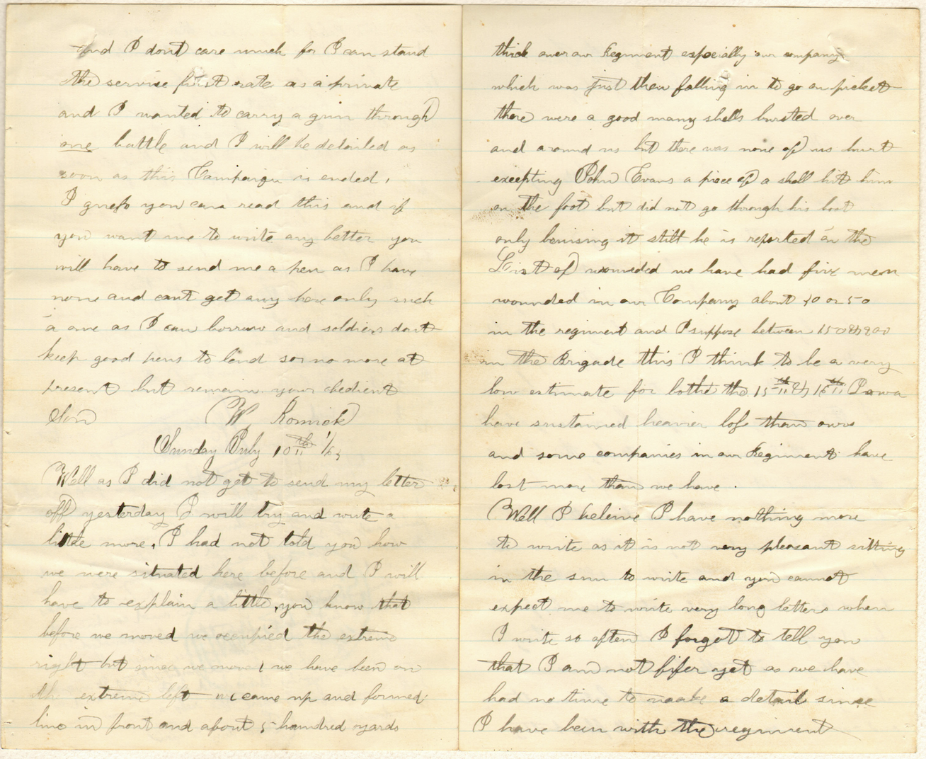 William possessed a noteworthy and engaging style of writing that stood out among soldiers. His expressions were often humorous and unusual. And of all the thousands of Civil War letters I have transcribed, his are the first to document the use of camouflage by Union skirmishers (see letter of June 9, 1864 before Atlanta).