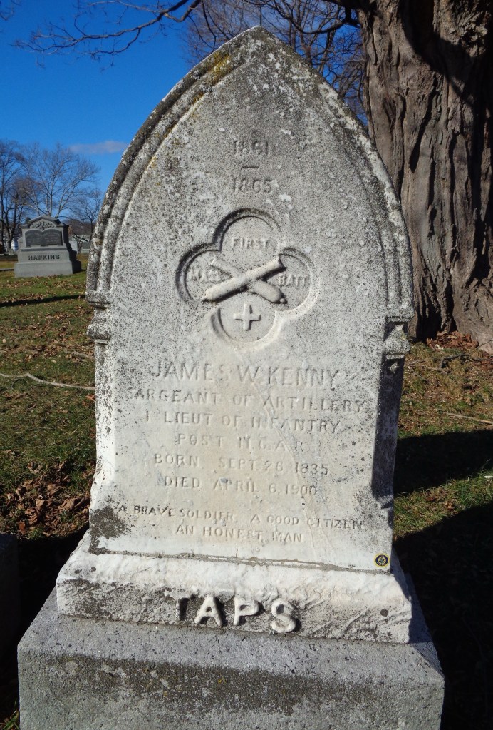 Headstone of James W. Kenney, “sargeant of artillery” and a “brave soldier, a good citizen, an honest man”