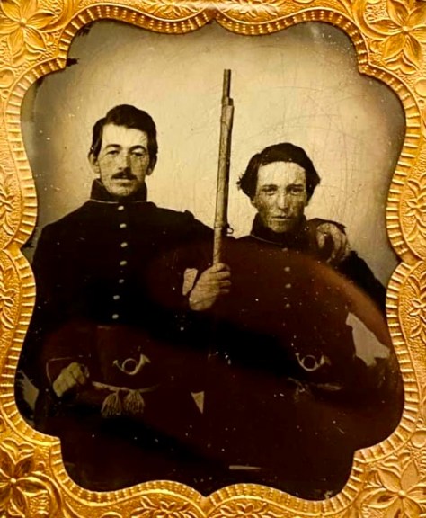 Last night I helped to capture two rebel soldiers. I was out on picket and these fellows came to a farm house about a fourth of a mile from here and a man came and told us and we went and took them. One had nothing on but a shirt, pants, and a red Zouave hat taken from one of our soldiers.