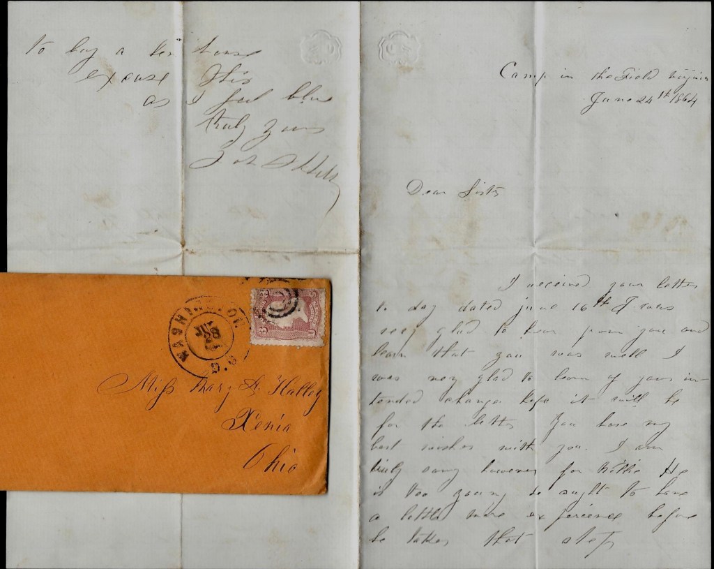 [This letter is from the personal collection of Dennis Miller whose great-great-grandmother, Amelia Cowger Miller (1839-1863) of Seybert, Pendleton county, W. Virginia, was the 1st cousin of Emanuel Cowger. It was offered for transcription and publishing on Spared & Shared by express consent.]