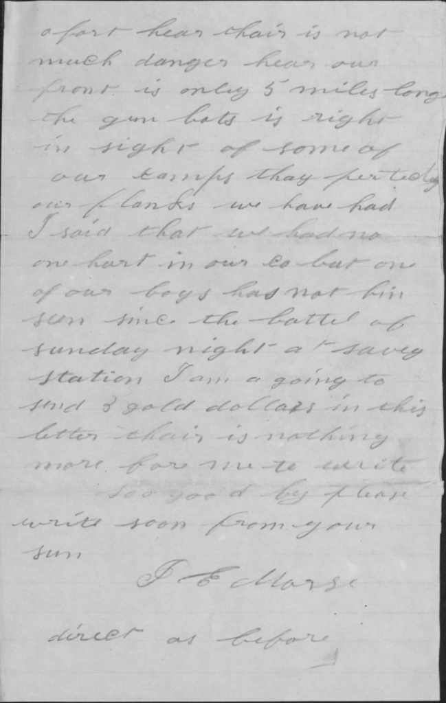 My dear friend, I never want to see another such affair. Our lines were moved in perfect order and I can assure you the rebels were moved as good. Sometimes we would gain on them, then they would get reinforced so we would be forced to give way till the veteran troops of the grizzley Sumner came up. The day seemed doubtful. Then we kept gaining slowly on them and at night we rested in possession of the battlefield. Thus ended the bloody affair. 2