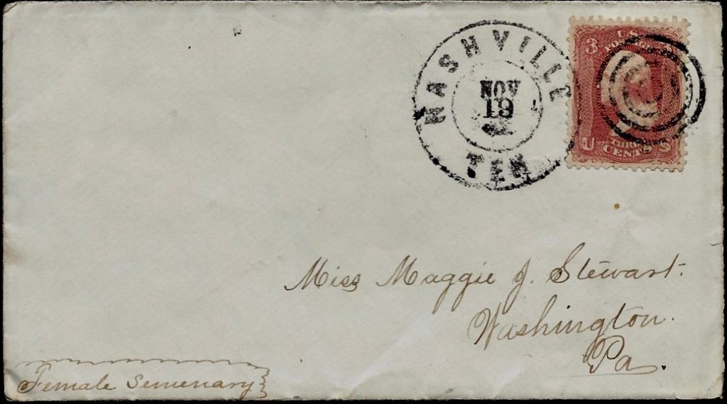 Rob had a letter from Craig Patterson yesterday. They are at Nashville and have been on half rations too but they have a chance to get anything they want. I suppose you are at Washington [Pennsylvania] now and I will direct this there. Write soon. Give all the news and how times are about Washington. As ever your cousin, — Joe E. Stewart