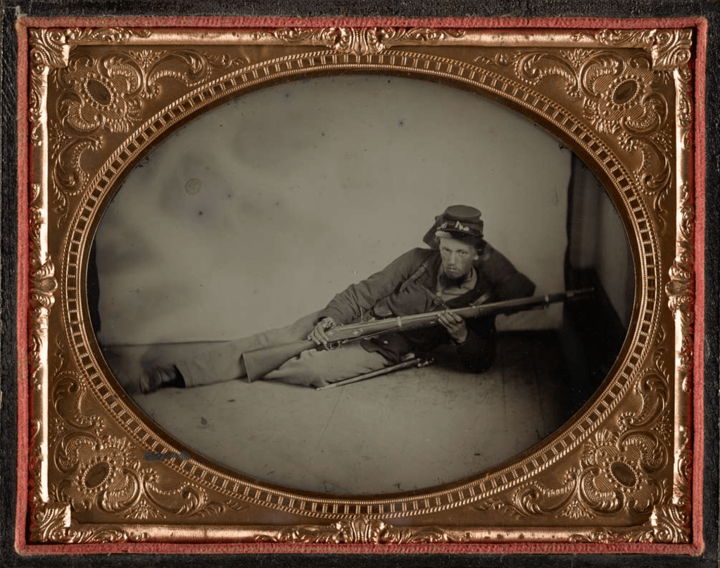 Our regiment has new Enfield rifles yesterday. I have got a gun, but no equipments yet. I have been out on drill two or three times. It is pretty warm work but is not very hard. We drill the skirmish drill most of the time. It comes quite natural to take hold of a musket again. The nasty flies bother me so that I can hardly write. You never saw half as many flies as we have here and such mean ones. We can’t keep them out of anything—especially when we’re eating.
