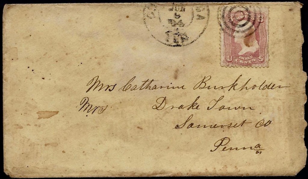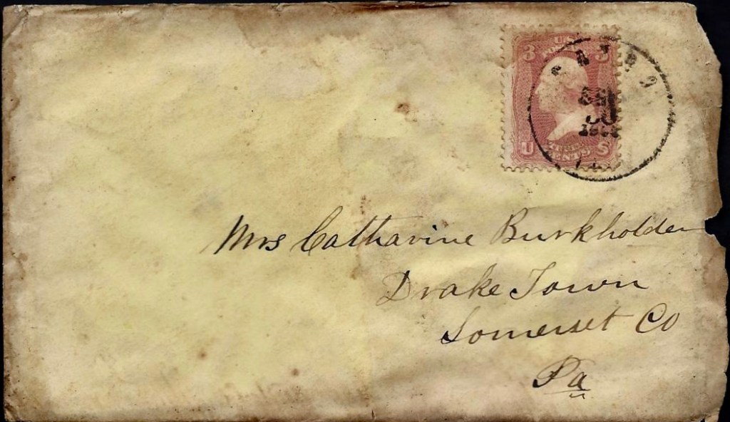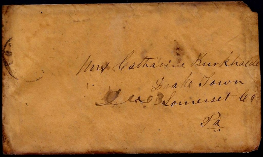 Addressed to Mrs. Catharine Burkholder, Drake Town, Somerset county, Pa.