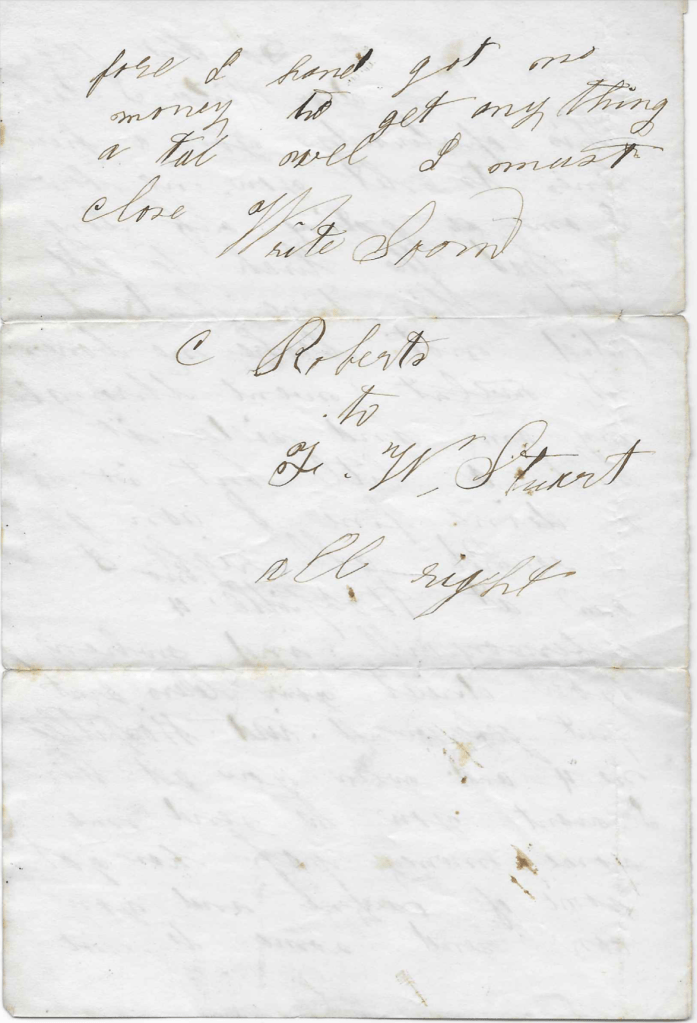 Send me a letter as soon as you can. No more at present but write soon. — Charles Roberts