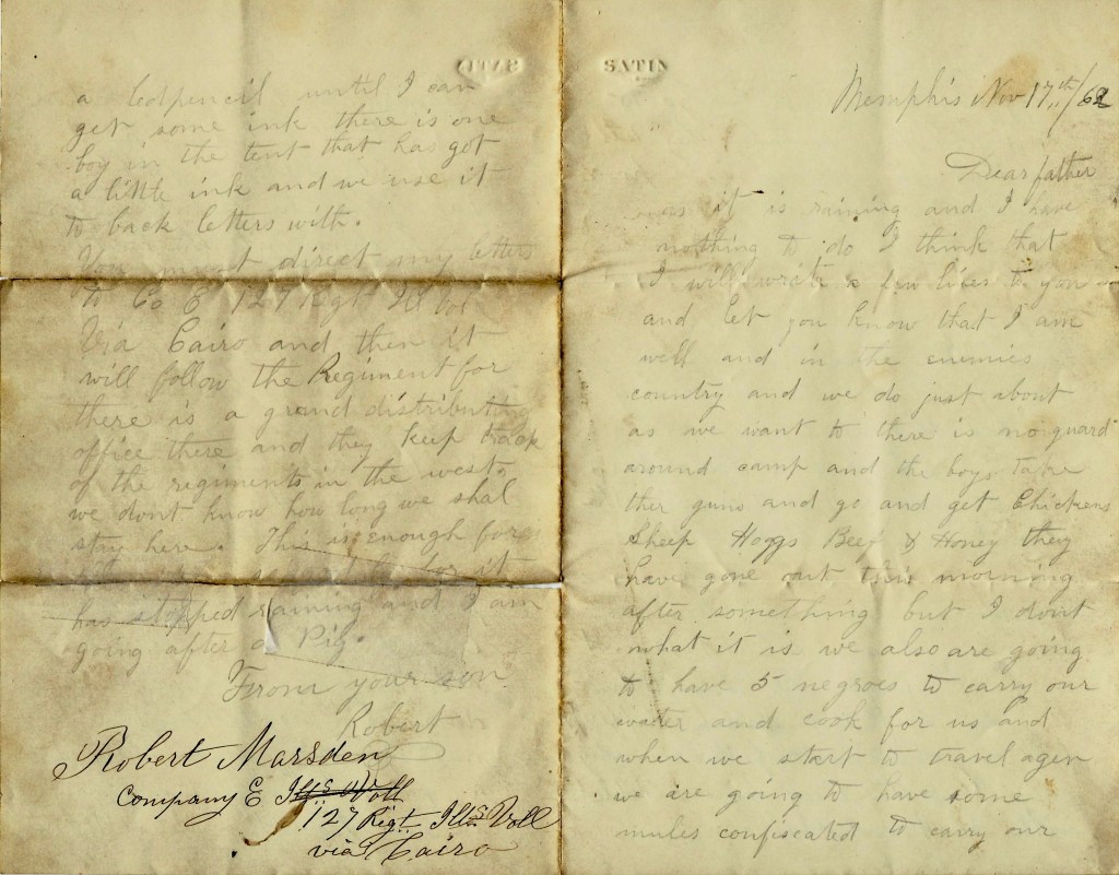 Robert Marsden, Company E, 127 Regt. Ills Vol., Via Cairo