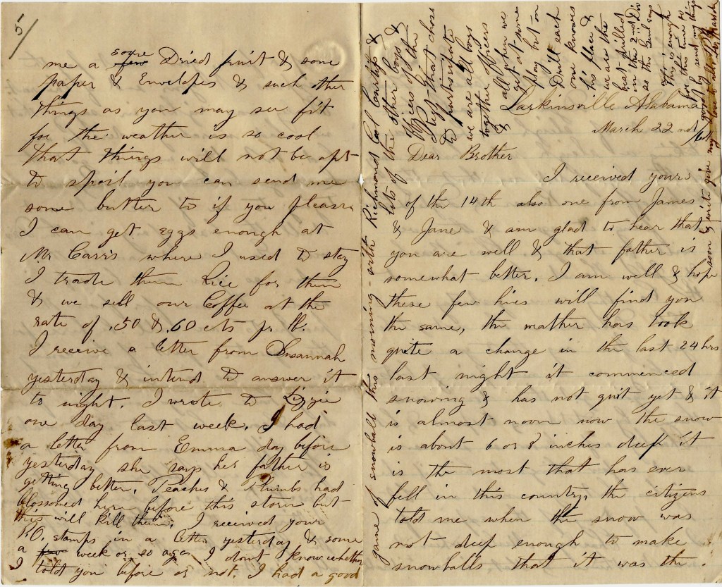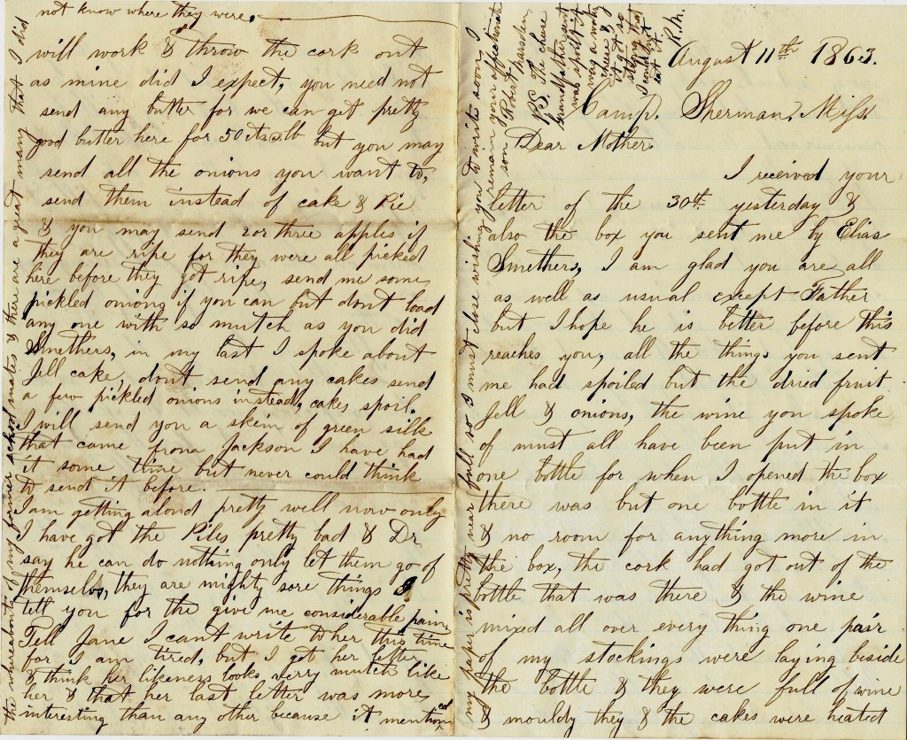 When you write to me, I want you to tell me where Billy is. I think that he has acted the shit ass. He hain’t wrote to me a letter since I come to war and if he don’t write to me pretty soon, I will forget I have a brother at home. just tell him if he waits for me to write, he won’t get one from me as long as I am in the army. If he hain’t got a better chance to write to me than I have to him, why I don’t know.