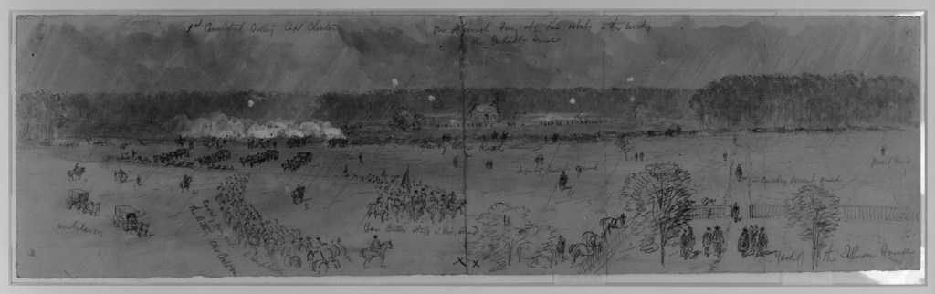 There has been some hard fighting. Our regiment has not been engaged. I helped get some of the 8th New Jersey Volunteers out yesterday who were wounded. Gen. Birney with the 10th Corps & [ ] of our corps are on the [ ] & it is reported are near Malvern Hill. They brought a rebel General dead in yesterday. His name was Chamberlin [John Randolph Chambliss, Jr.], I believe, a cavalry general. 1