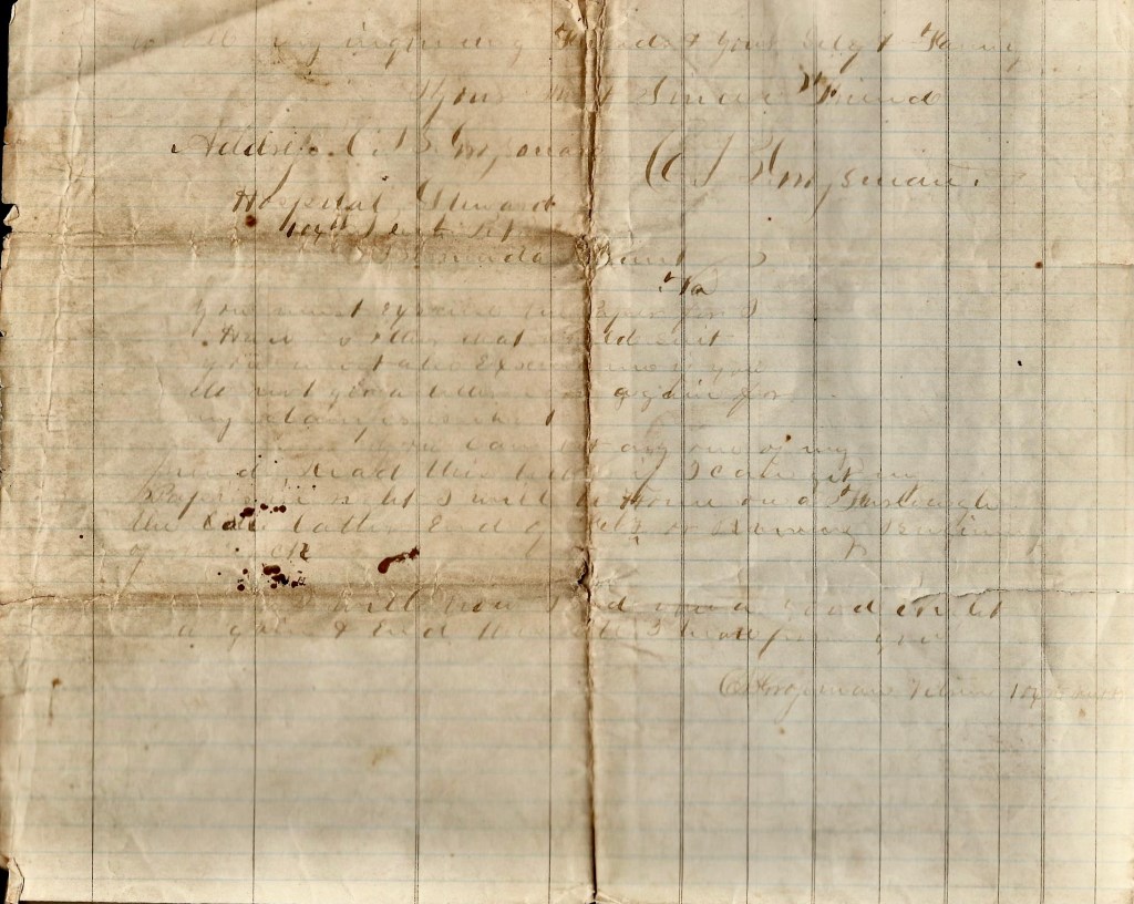 But I must come to a close hoping this may find you well. Just excuse poor writing and blunders that I could not avoid….Give my love love to all my enquiring friends and yourself and Fannie. Your most sincere friend.