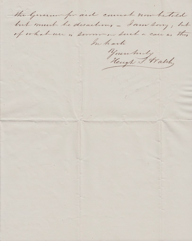Very truly your friend & obedient servant, — Hugh S. Walsh