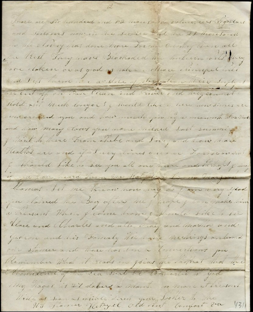 So when I came from home in November having $400 in my pocket, I put it in the Bank of Norfolk, came to camp, and gave it out that I wished to raise a thousand dollars by January 1st and how much do you think I got after relying on promise that I should have the whole—sixty dollars from one party and nothing from the other. I did this because I saw these debts were increasing and would never be paid if allowed to become large. I have men owing me $98 from one party and $60 from the other. This last is Cane’s debt who let me say, for he needs a good word on that score, has always been strictly honorable in his dealings with me; borrowing but seldom and never disappointing me when I have needed pay. But enough. We can talk these things over when we meet,