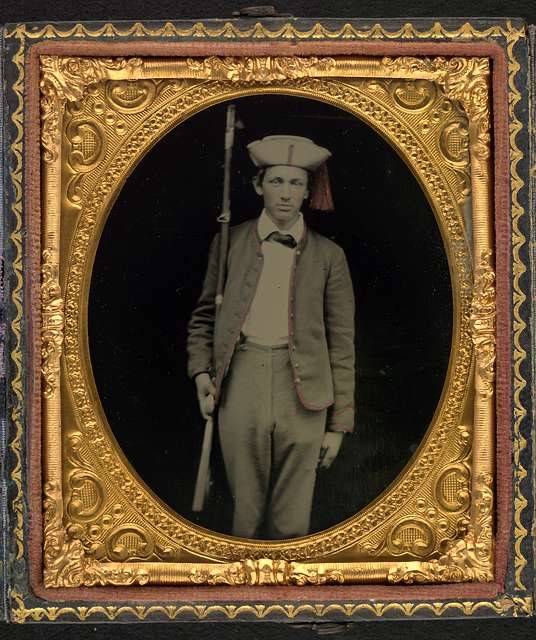 We are uniformed and equip[ped] and we have as much harness on us as would harness two horses. If we ever get back, we will be good to peddle table cloths or pack salt. Well, I sent you a few lines by Hastings and I suppose you got them. I wish you could just see Miller and I. You would laugh I know for my pants are big enough for Old Jimmy Anderson and the legs are wide enough for wool sacks. The balance of our suit does very well. We have tolerable good grub but no variety.