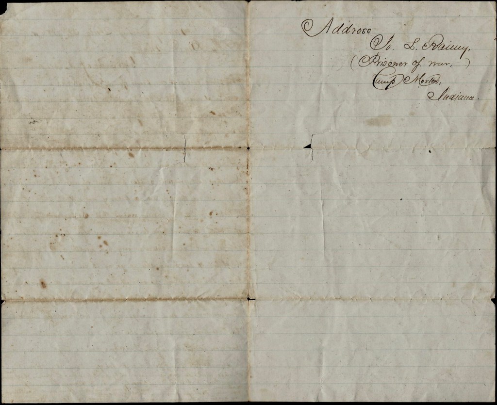 Address Jo. L. Rainey (Prisoner of War) Camp Morton, Indiana