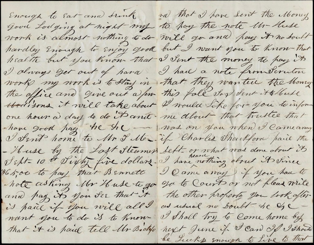 I can’t write no more so goodbye. Write to me when you can. I shall be glad to hear from you. From your affectionate father, — George F. Edgerton