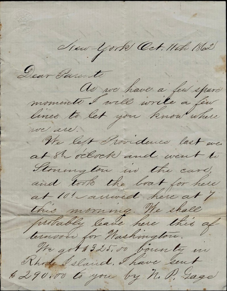 The following letter was written by William C. Guest (1839-1875) who enlisted as a private at Sodus, New York, on 9 September 1864 to serve in Co. C, 160th New York Infantry. He survived the war and was discharged on 1 June 1865 in Washington D. C.