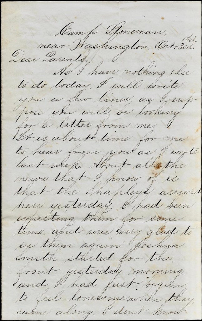 Our regiment is very small. It only contains 250 men and it left Auburn with 840 men. We have a full view of Washington from this camp.