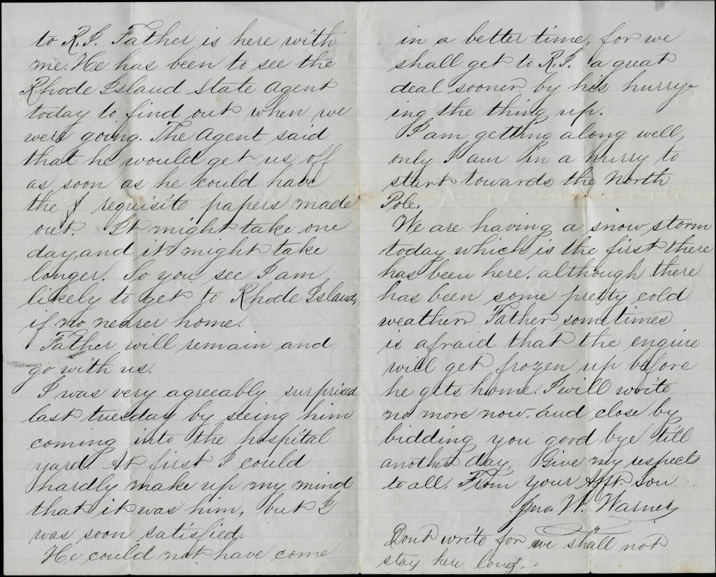 Day before yesterday Jimmie procured a pass and visited Washington. He with John Layton who is there at the Campbell Hospital visit the places of interest and curiosity of Washington.