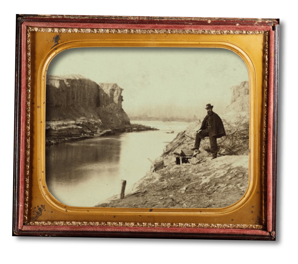 January, Thursday, 19. 1865—Cold & cloudy, wind north. Am not on duty today. Wrote a letter home & sent them my picture. [James] Cummings & myself carried dinner to the detail at work on the bridge. We took a boat ride.