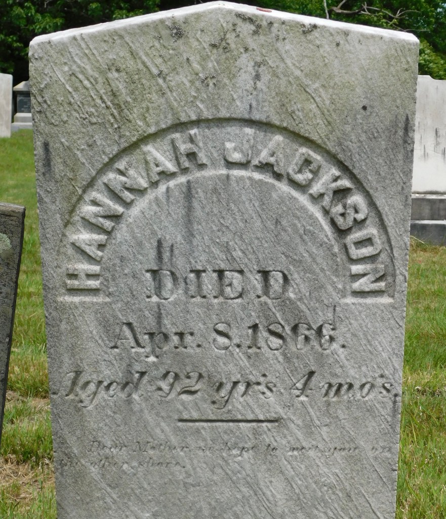 Hannah Jackson’s Grave Marker in Orchard Grove Cemetery, Kittery, York county, Maine