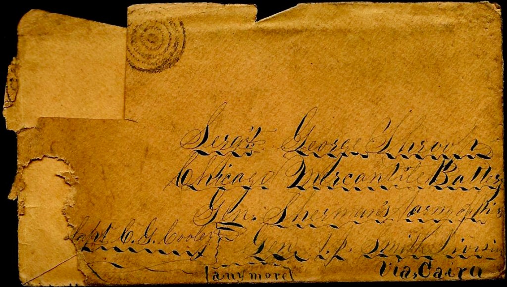 Addressed to George Throop, Chicago Mercantile Battery, Gen. Sherman’s Army of Mississippi, Gen. A. J. Smith’s Division Capt. C. G. Cooley