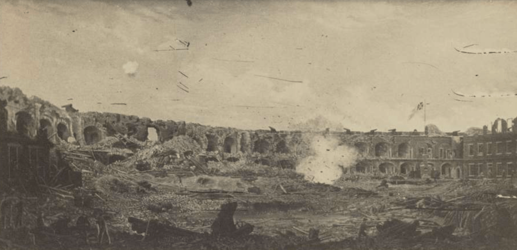 Image taken of the inside of Fort Sumter in 1864 when occupied by Confederates
