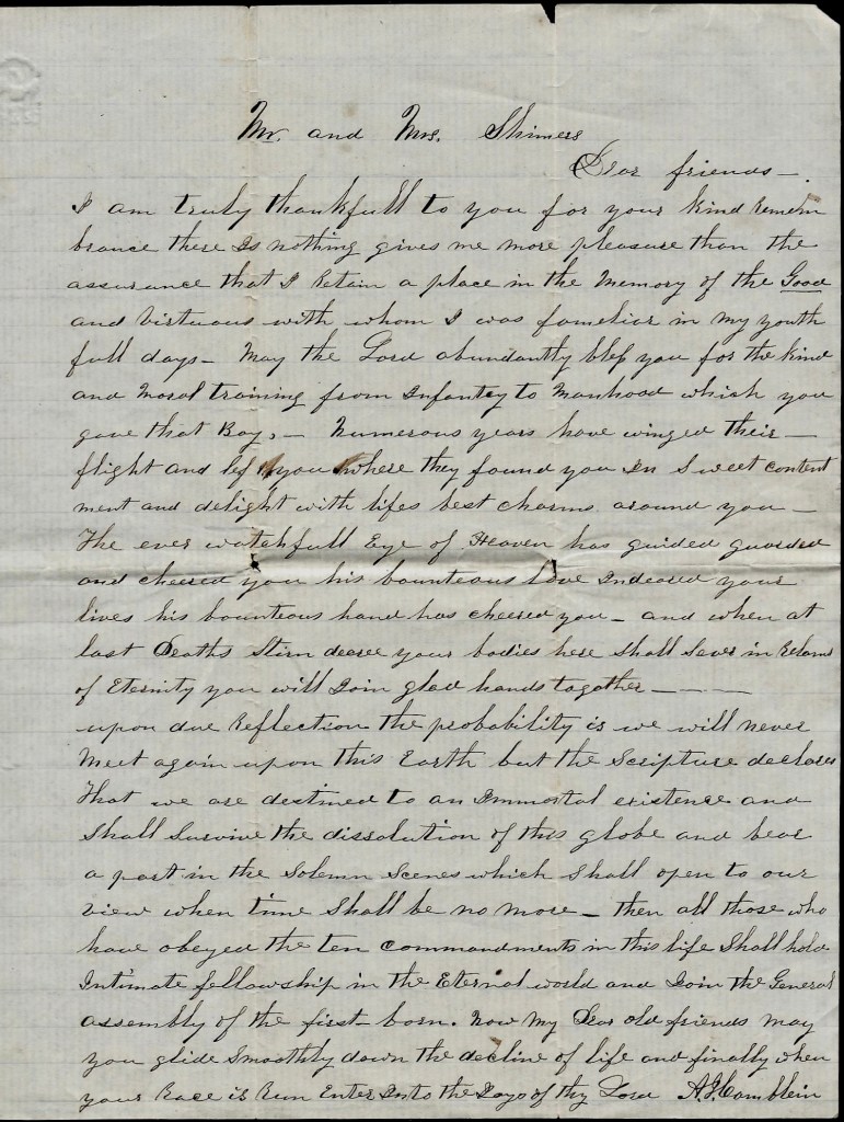 [A sheet follows addressed to Mr. and Mrs. Shimers]