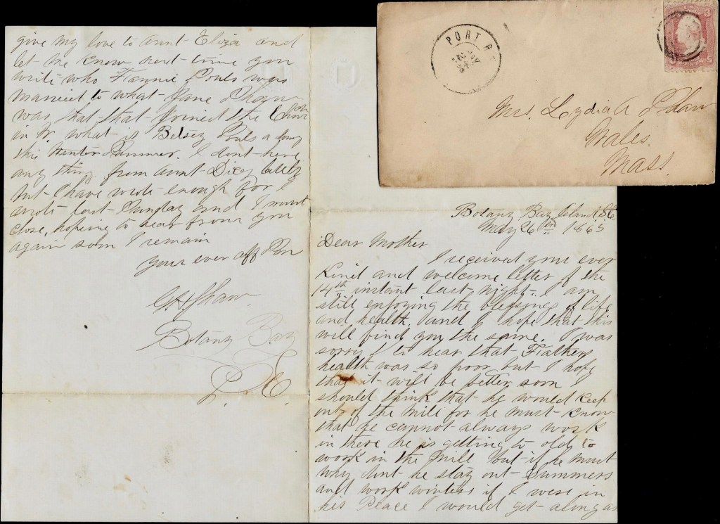 The second and third letters were written in July 1864 from the encampment of the 3rd Rhode Island Heavies just outside of Fort Welles on Hilton Head Island. Unfortunately for Fred, he did not survive the war. He died of disease at a hospital at Beaufort on 28 August 1864, less than a month after he penned the third letter.