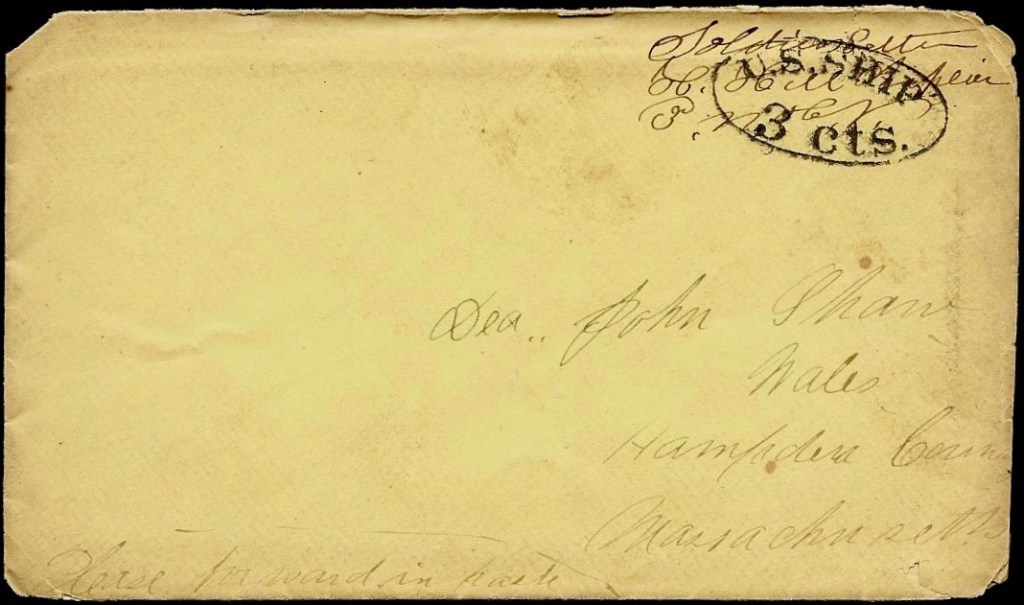 Edward wrote the letter to his wife, Susan (Blood) Hall (1822-Aft1900) with whom he married in 1847. Edward was a native of Epping, New Hampshire. His parents were Samuel Hall. and Elizabeth Lee. Edward and Susan lived in Haverhill, Essex county, Massachusetts in 1860 where Edward was employed as a shoemaker.