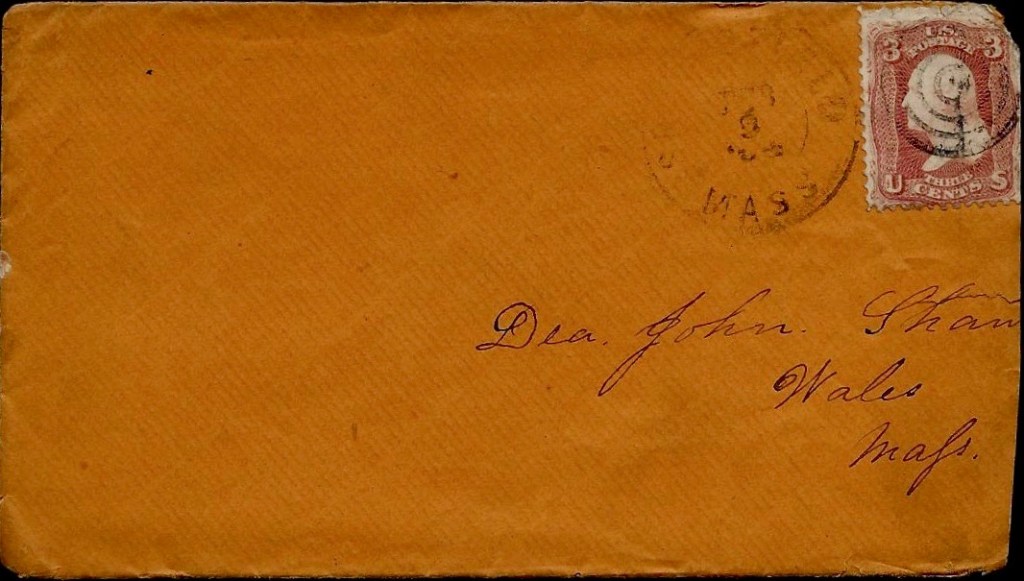 Well, Father, who you a going to put in for President next Presidential Election, or have you not come to a conclusion yet? I suppose you know that I shall be a voter now and if I live until next fall shall cast my first vote for President. You Tell John that I am looking very anxiously for an answer to my last letter that I wrote him. Give my love to Mother, Ellen and Ansel and all of John’s folks and write soon. The Wales boys here are all well but I shall have to close as I have got to write to Sarah for I have not wrote to her since I left the Grove. Well, goodbye for this time. Hoping to hear from you soon, I remain your ever affectionate son, — George A. Shaw