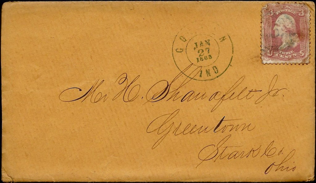 Joseph wrote the letter to Henry Shanafelt, Jr. (1827-1893) of Greentown, Stark county, Ohio, who was the husband of Rosa F. Peters (1832-1917)—an older sister of Joseph’s.