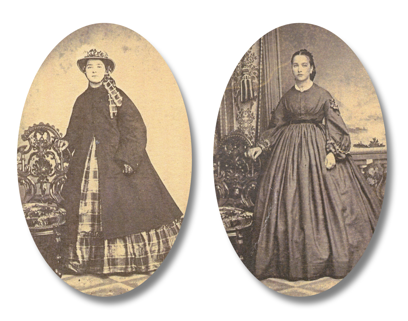 Josie Harp (left) and her younger sister Mollie. Both are cdv’s that date to about 1865.