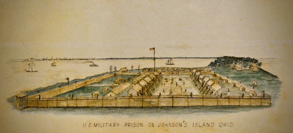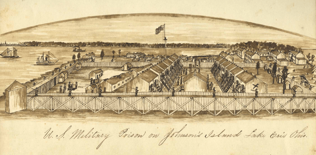 The military prison on Johnson’s Island, Lake Erie, Ohio(Encyclopedia Virginia)