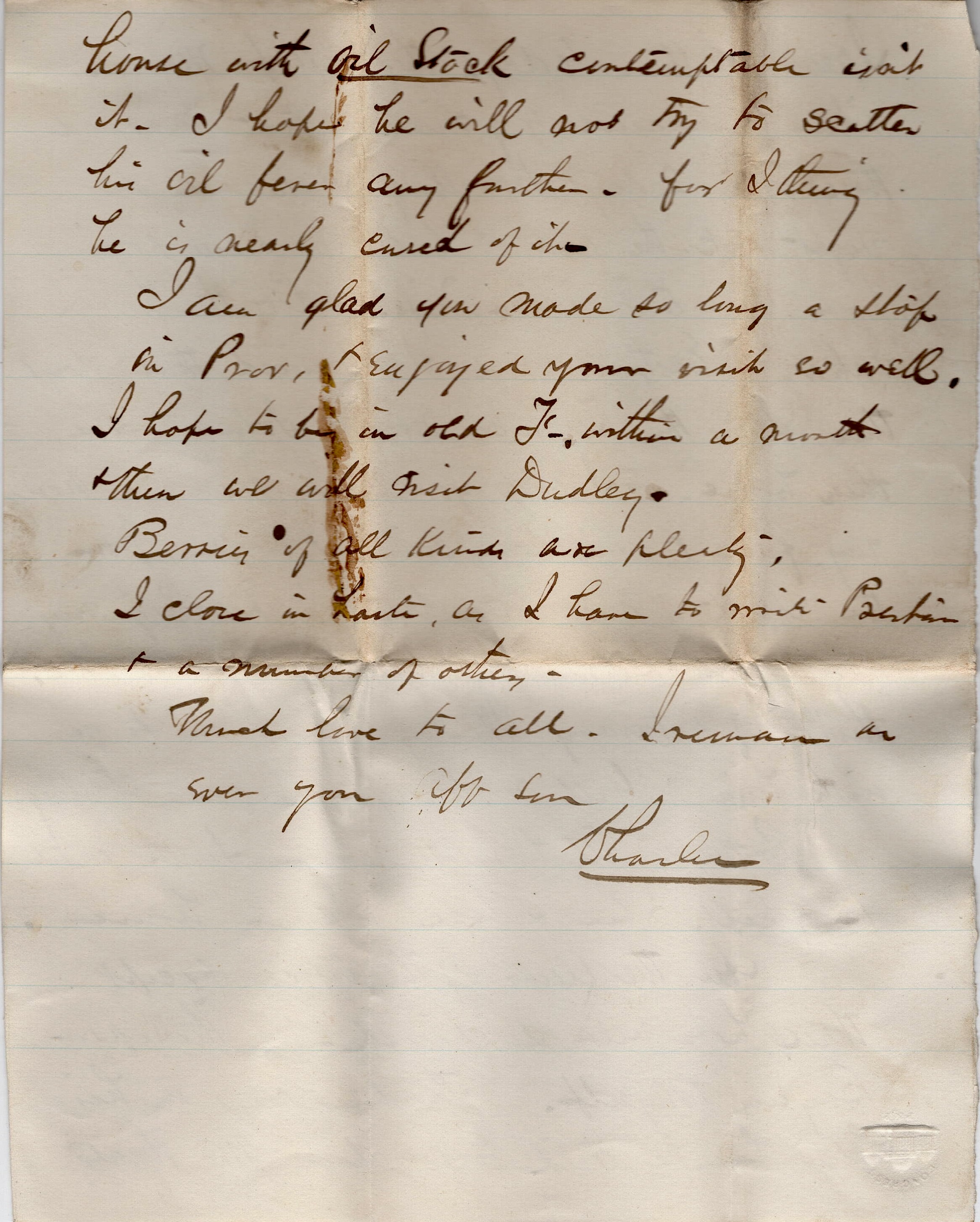 I close in haste as I have to write Preston and a number of others. Much love to all. I remain as ever your affectionate son, — Charlie
