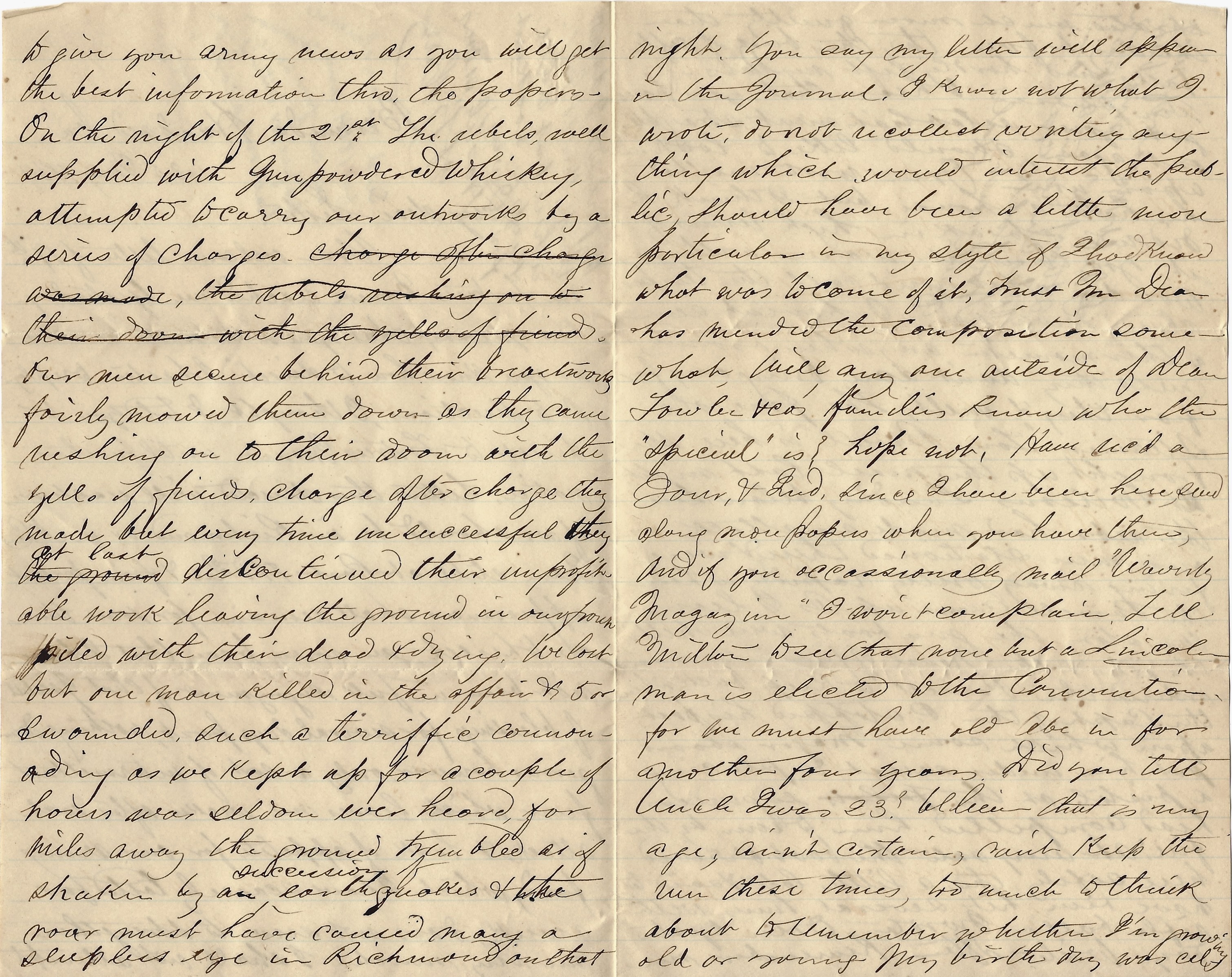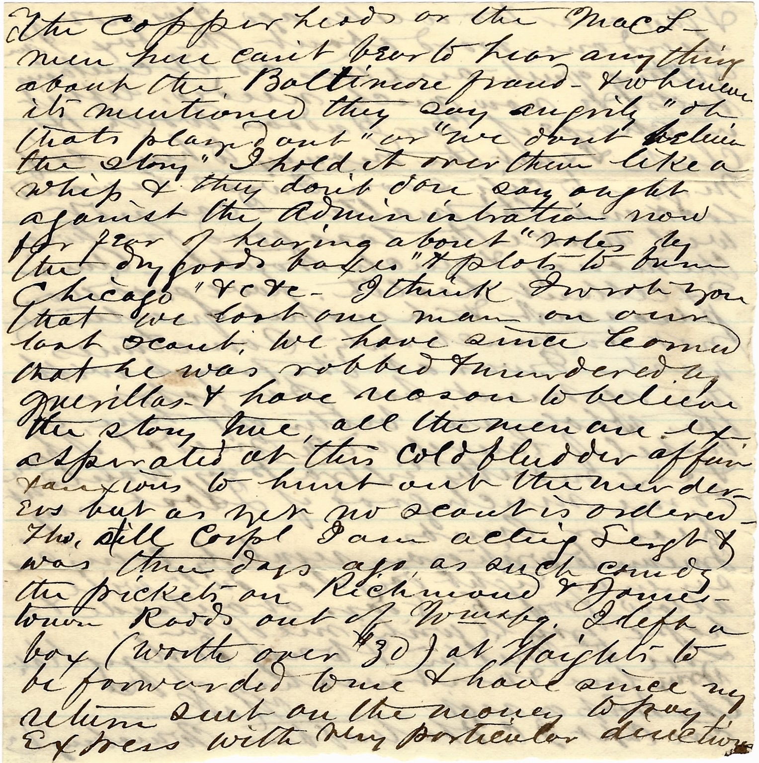 P. S. I send you a couple of papers that are printed in this city. They are selling for ten cents here in camp. We have another just started called The Herald.