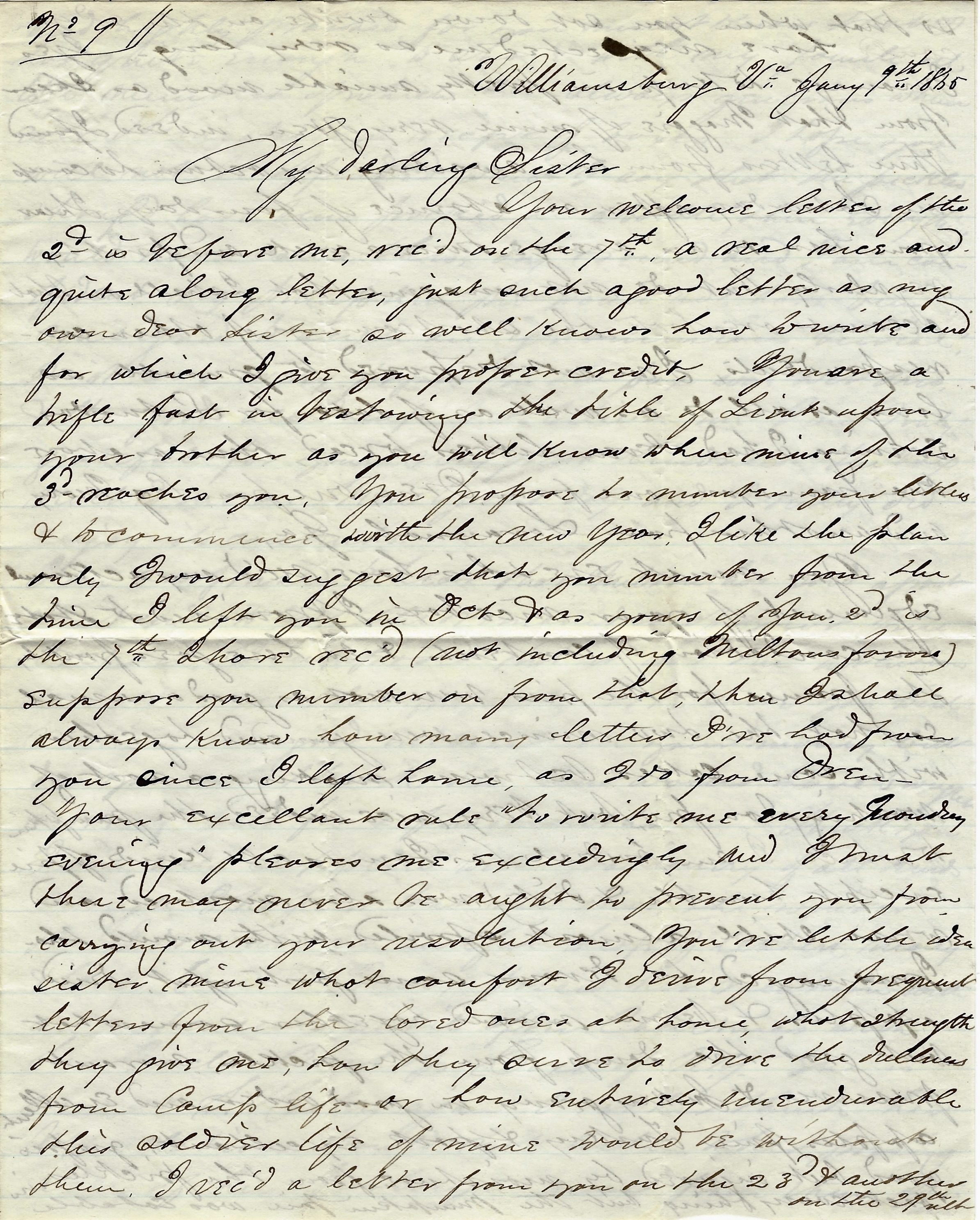 Yours of the 12th was received the 21st. I was very happy to hear from you. It seemed a very long time since your last. Dear sister, it is pleasant to know, situated as we are in the army, that kind friends at home feel an interest in us, and often think about and pray for our safety.