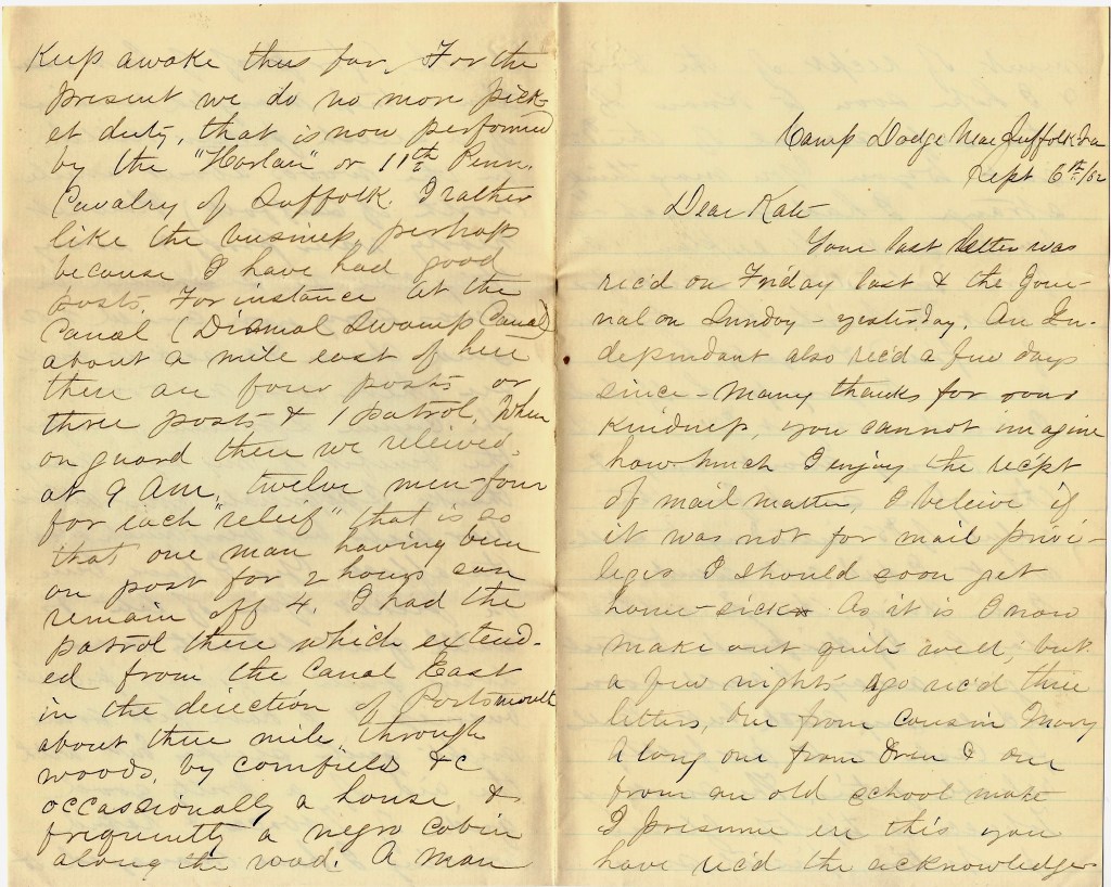 Camp Dodge near Suffolk, Va. September 6th 1862