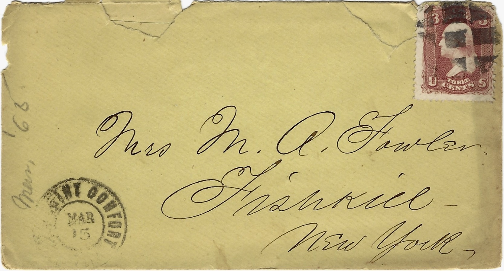 Brush graduated from the University of Vermont at Burlington in 1858 and took over the medical practice of his father, Dr. Salmon Brush (1804-1887) in Cambridge, Lamoille county, Vermont. Edwin wrote the letter to his wife, Amy R. Brush (1836-1915).